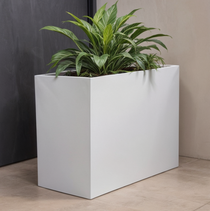 Rectangular shape allows for deep root growth, making it ideal for larger plants or those with extensive root systems. The sleek, minimalist design seamlessly integrates into contemporary settings, providing a sophisticated touch to patios, balconies, lobbies, or living rooms.